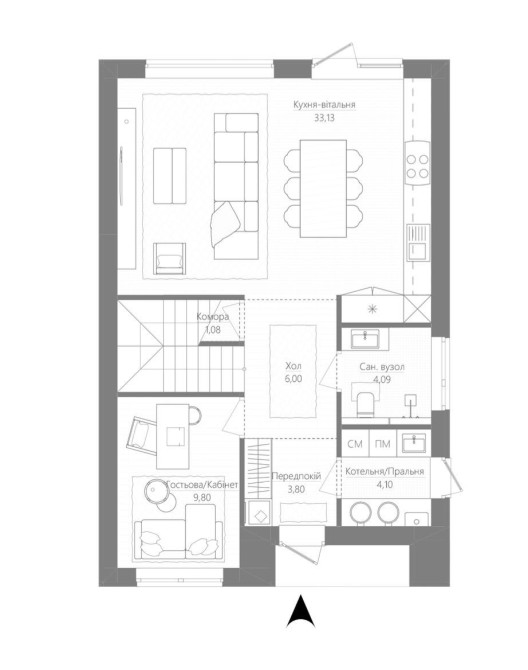Площа будинку — 126 м²