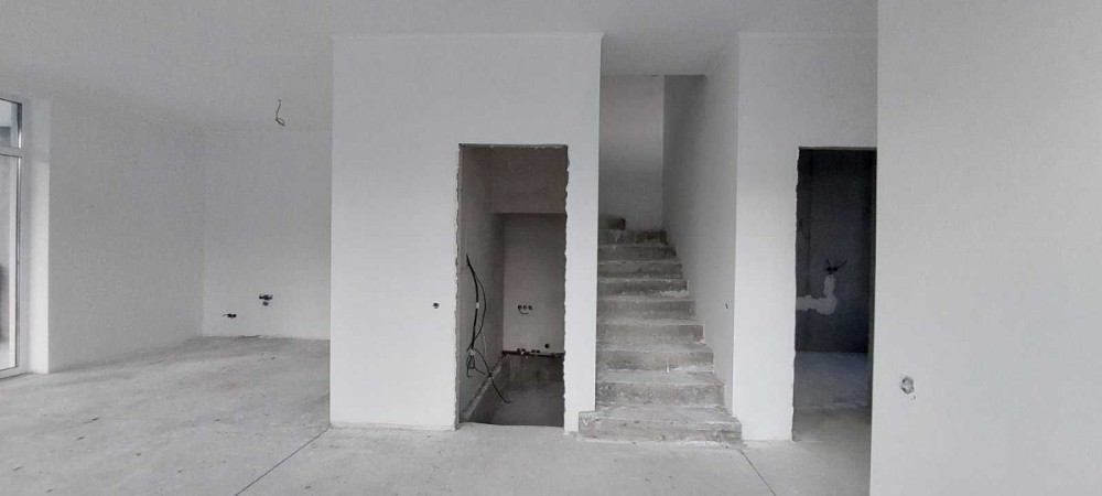 Будинок збудований з газоблоку, утеплений. Фасадні роботи виконані. Ремонт зроблений на 70%. Стелі підшиті, фарбовані. Стіни штукатурені, покриті грунт-фарбою. Зроблена тепла підлога, чистова стяжка підлоги. В санвузлах встановлена інсталяція. Розведена електрика і сантехніка.