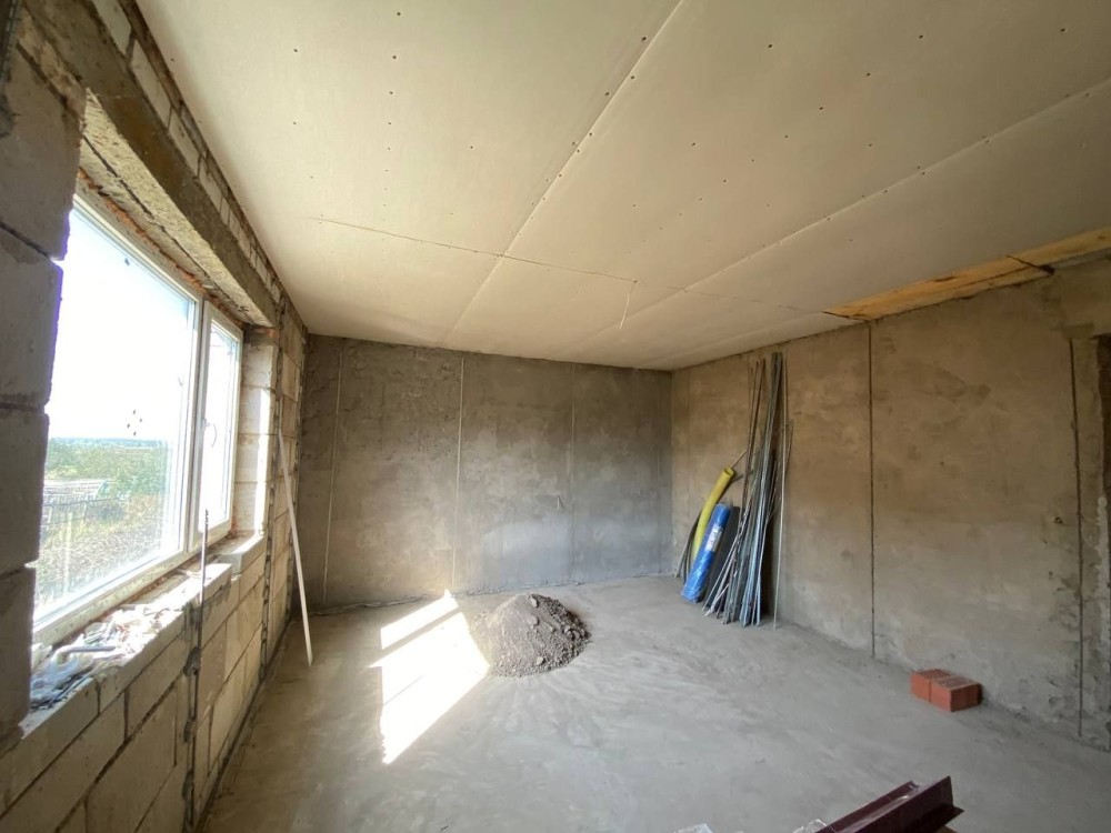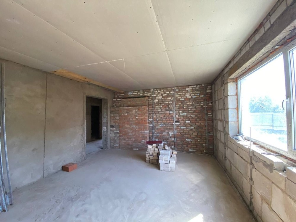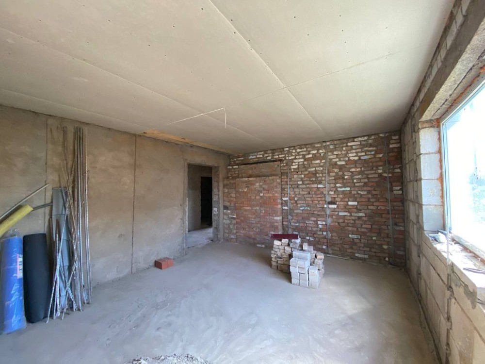 В середині проведені частково внутрішні роботи- штукатурка та стяжка, розведені комунікаці. Є матеріали для монтажу системи опалення.