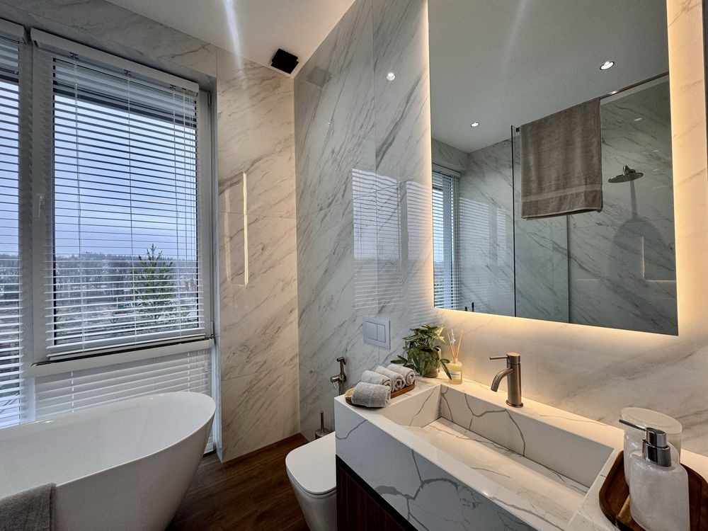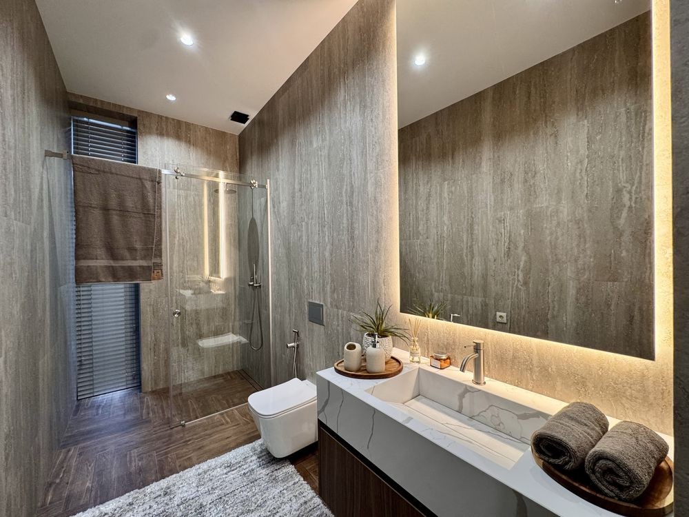 2 поверх — мастер-спальня з власним санвузлом та гардеробом, 2 додаткові кімнати, основна ванна кімната, хол.