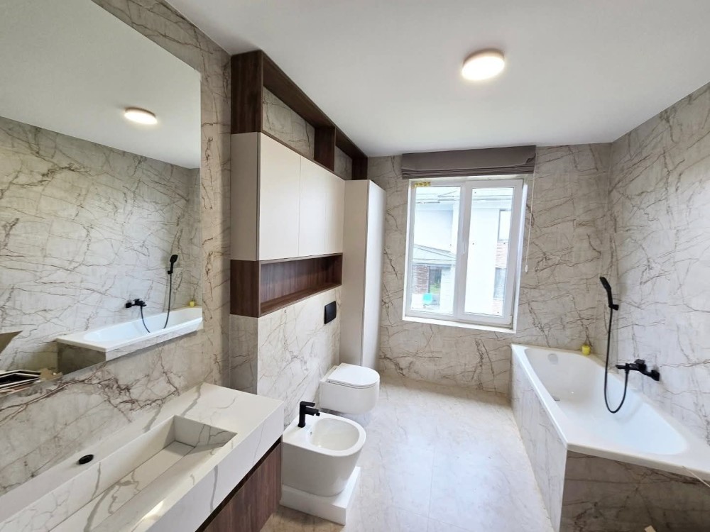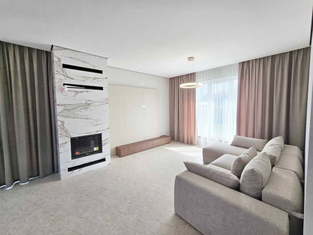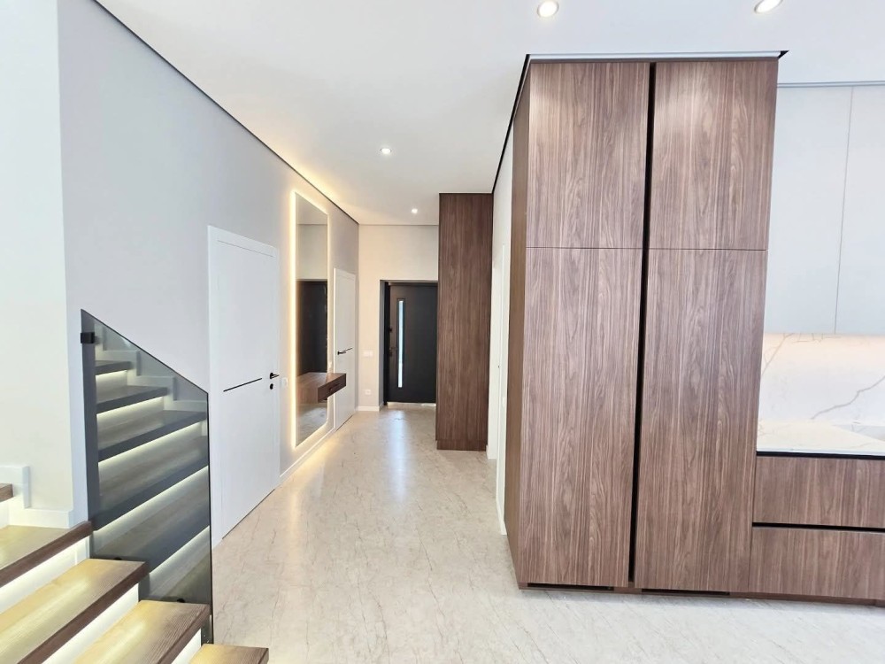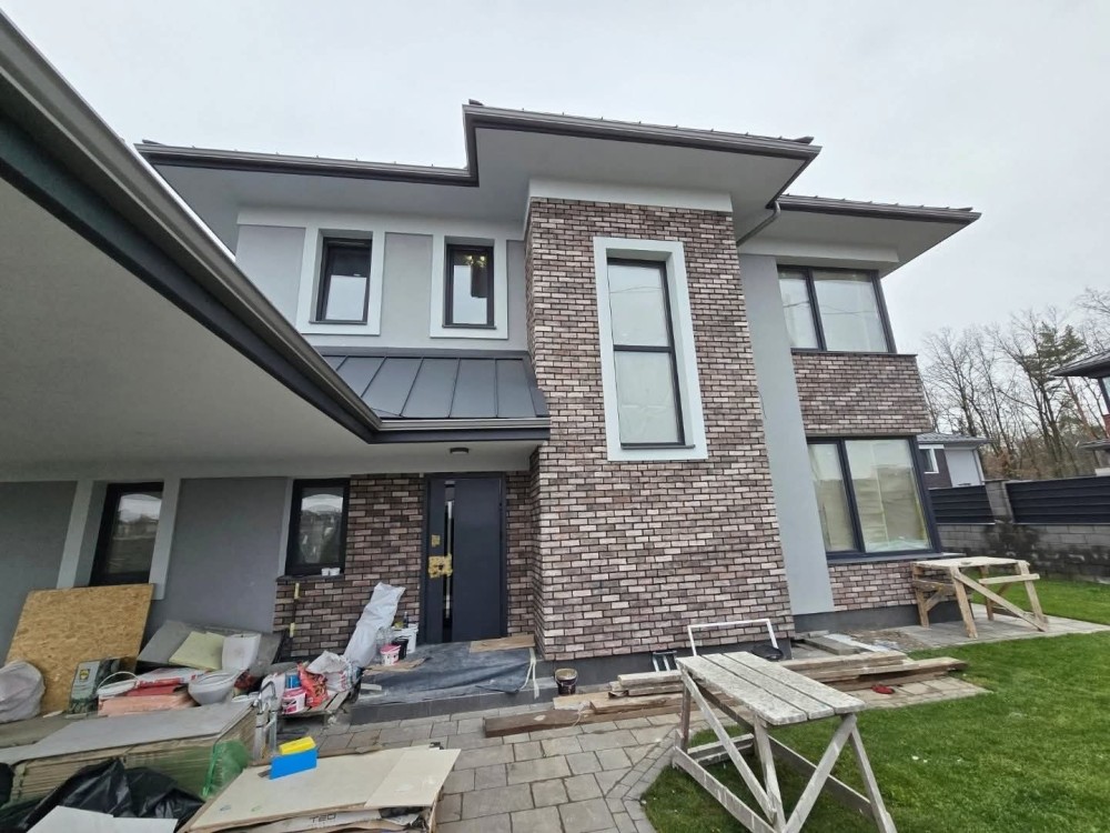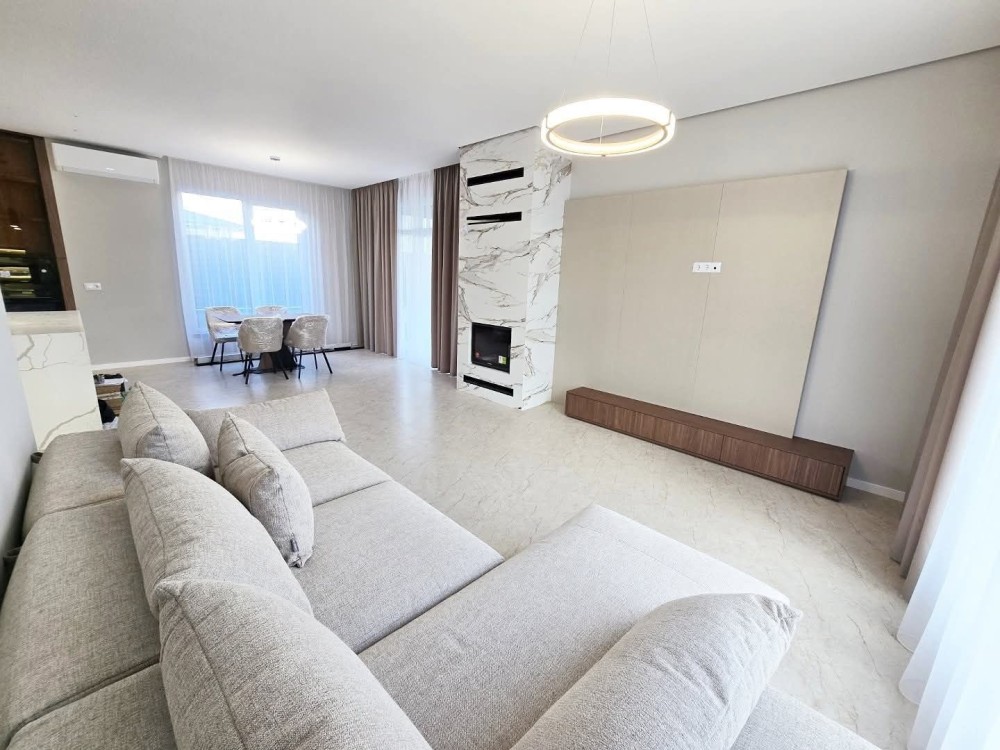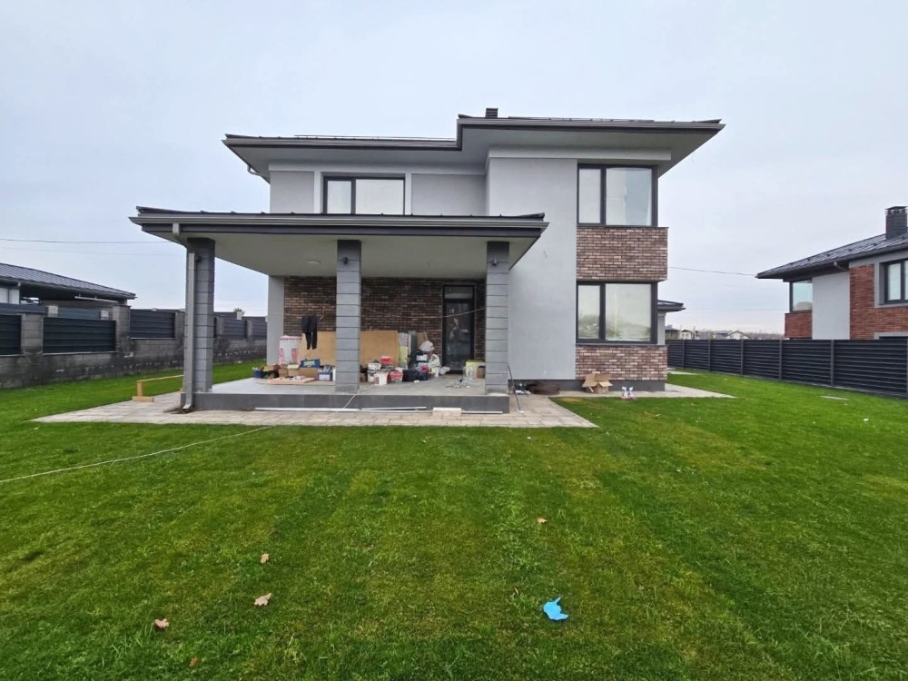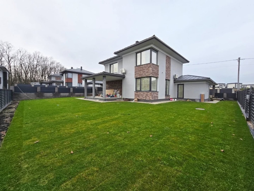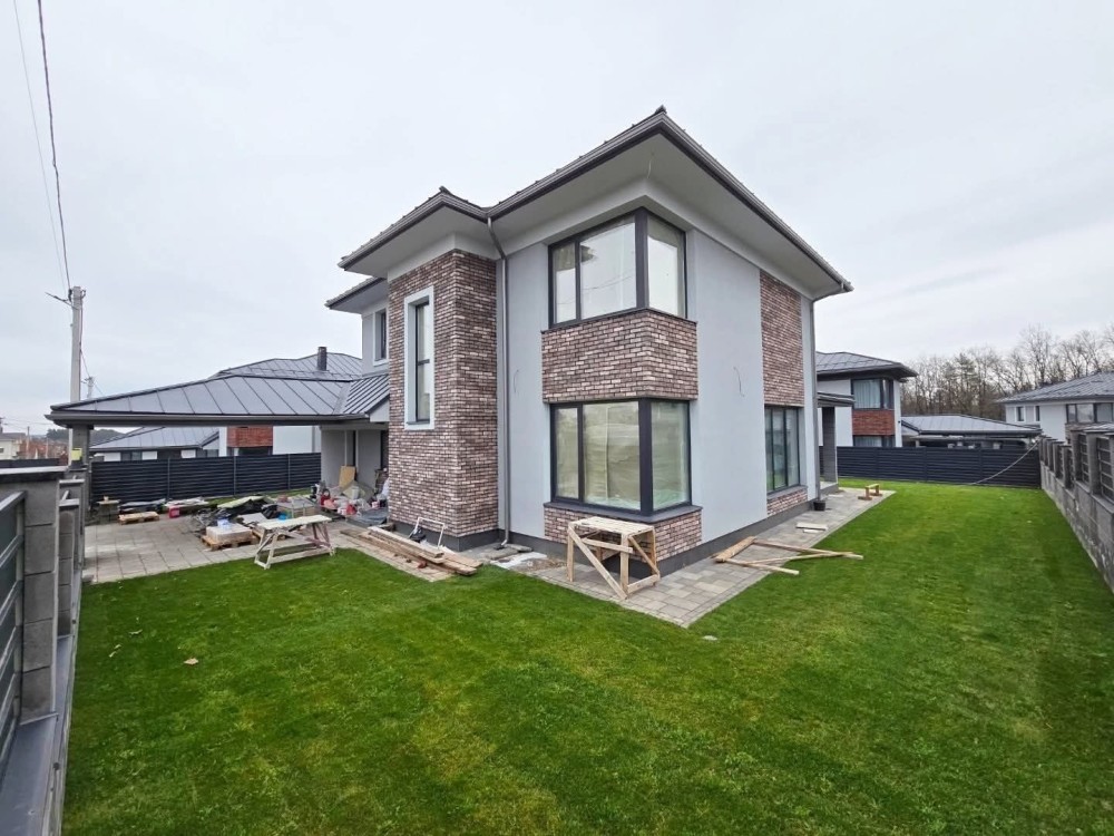 Робиться новий дизайн ремонт : кухня з технікою, сантехніка в санвузлах, камін , плитка в санвузлах, в кімнатах покраска, освітлення, штори. Ламінат в кімнатах на 2му поверсі, 1й поверх плитка. Ділянка з озелененням. Ворота, калітка.