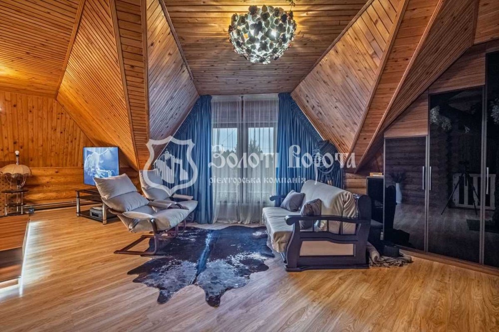 На першому поверсі розташовані кухня-студія, ванна кімната, сауна та камін. На другому поверсі — дві спальні кімнати. Уся техніка та меблі залишаються новим власникам.
