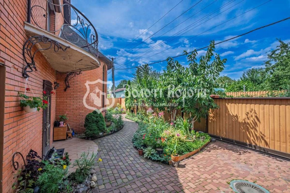 Подвір'я будинку викладено тротуарною плиткою, є стоянка для авто перед будинком. Територія прикрашена клумбами з ексклюзивними рослинами, великою кількістю квітів, кущами смородини та малини. Великі сосни створюють приємний затінок та затишок, а спеціально облаштована зона барбекю та зона відпочинку запрошують проводити час на свіжому повітрі.