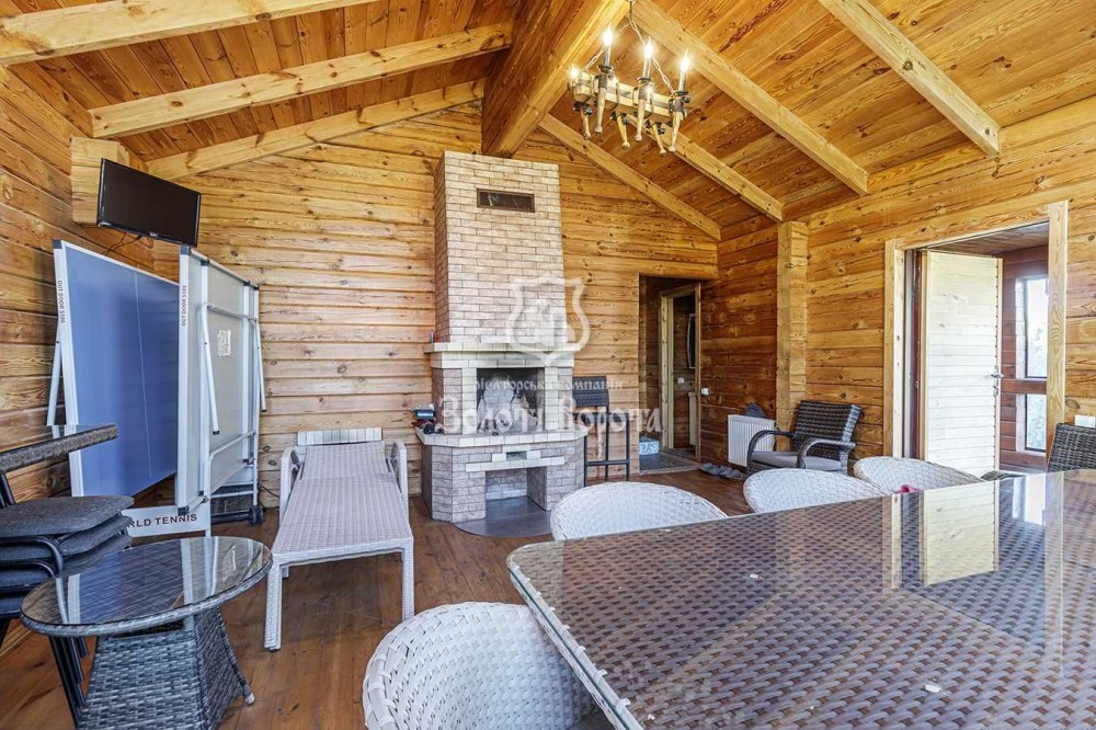 Прекрасний ландшафтний дизайн з рідкими деревами, грамотно проведений автополив з окремою скважиною. На території ділянки побудована зона мангала з пічкою та коптильнею, велика альтанка з мінікухнею. Також є гостьовий будинок з банею на дровах і басейном.