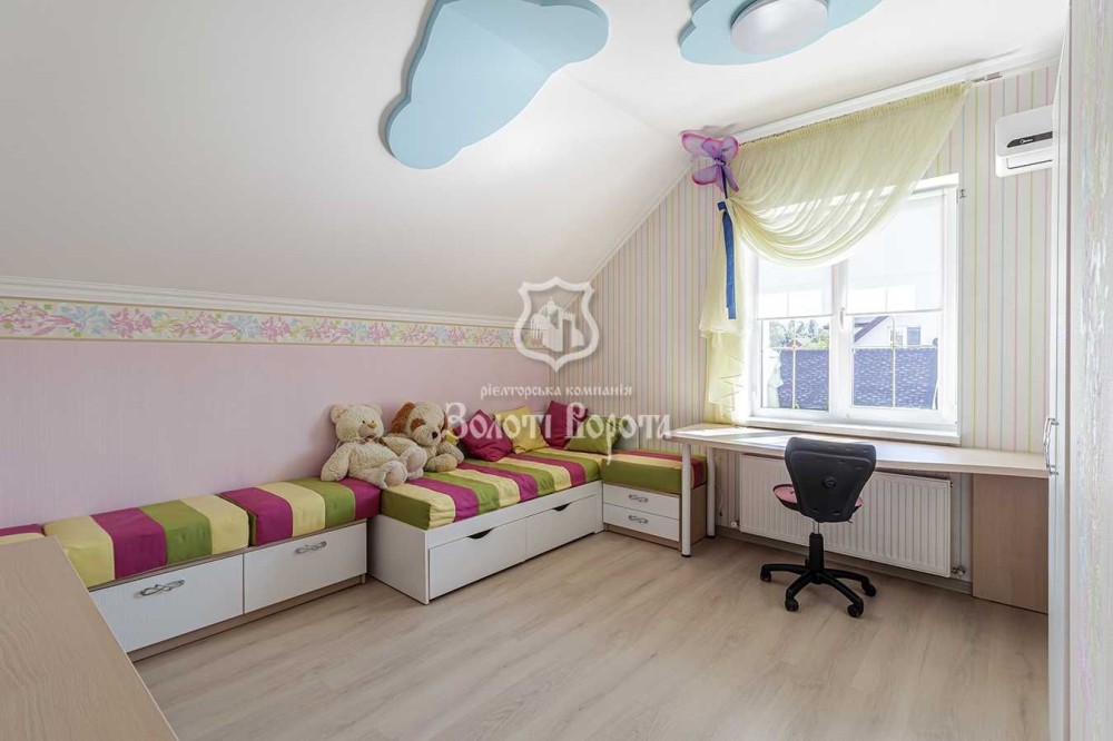 Продається будинок в містечку Глеваха, на вулиці Космонавтів, 32. Прекрасний 2-поверховий дім з і гаражем. На першому поверсі — кухня поєднана з вітальнею, одна спальня і гостьовий санвузол, котельня, вихід в гараж через будинок. На другому поверсі — три спальні, гардеробна, велика ванна кімната з душовою та джакузі.