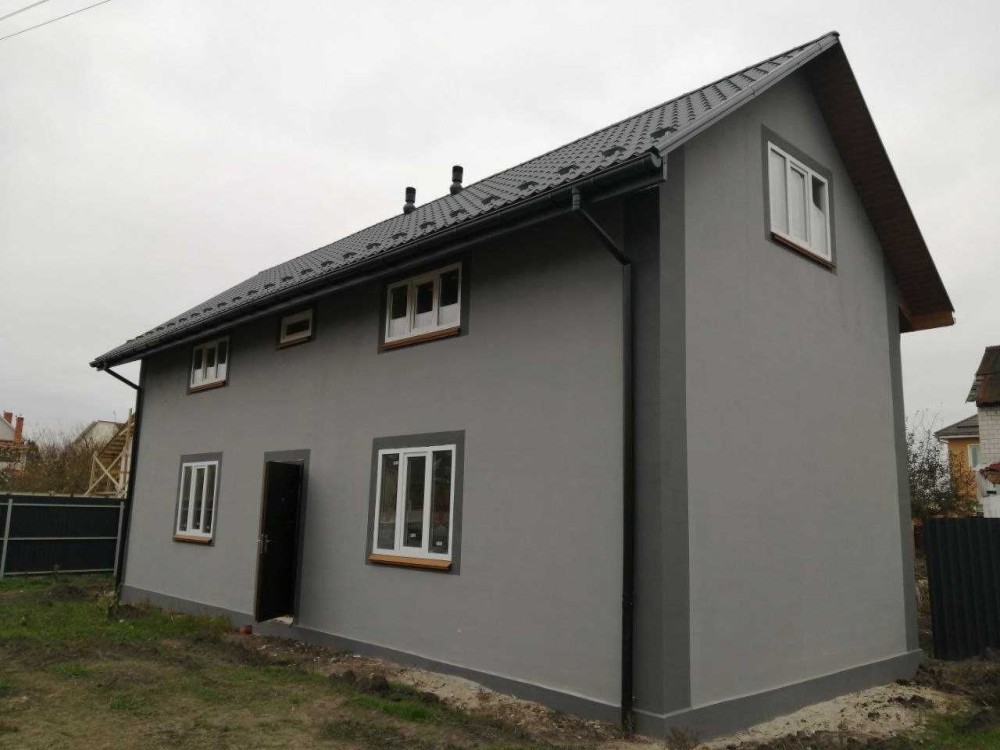 Двоповерховий будинок в спальному районі села Погреби (вулиця Рибальська) загальною площею 118,1 м2 (житлова площа - 75 м2; допоміжна площа - 43,1 м2) розміщений на земельній ділянці площею 0.03 га.