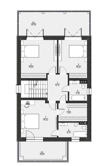 Планування в будинку дуже зручне та функціональне. Є місце усьому. Загалом 4 спальні, дві тераси, кухня з вітальнею, дві гардеробні кімнати, три санвузли, котельня і мансардний поверх, для зберігання речей. Ознайомитись із плануванням можна у прикріплених фотографіях.