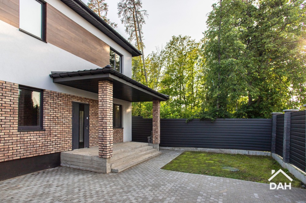 Будинок загальною площею 200 квадратних метрів, розташований у сосновому лісі у Києві. До проспекту Перемоги та метро Житомирська – 2.5 км. Селище Катеринівка, в локації збудовано багато нових будинків. Орієнтир ресторан «Верховина», вул. Чалого.
