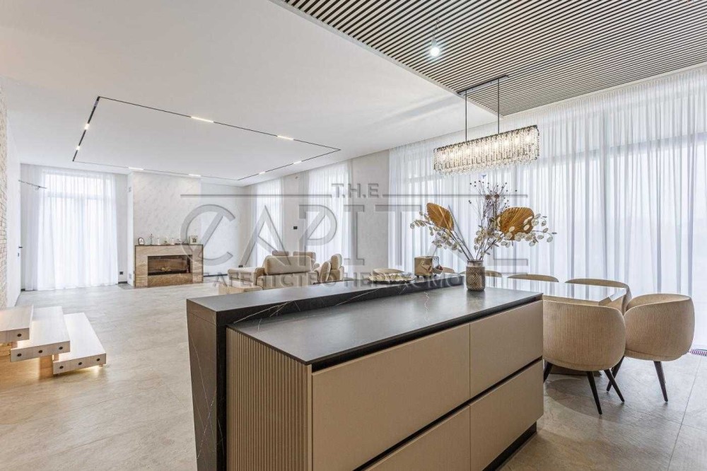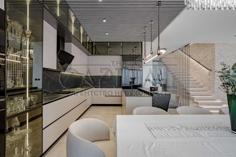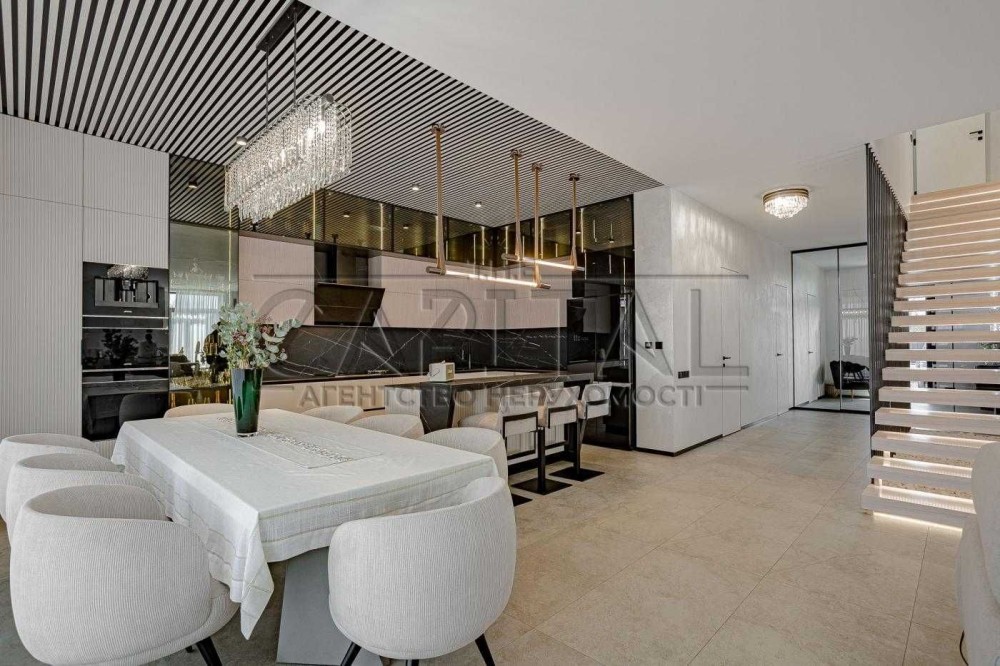 Втілення мрії про життя біля води – цей унікальний будинок, зведений у 2023 році, розташований у закритому ком'юніті на мальовничому півострові в протоці Дніпра. Власна ділянка 78 соток із 70-метровою береговою лінією дає можливість насолоджуватися панорамними краєвидами та безпосереднім доступом до фарватеру Дніпра.