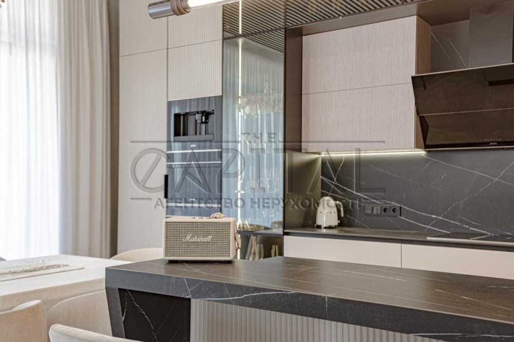 Перший поверх – відкрита кухня-вітальня з виходом на сонячну терасу, окрема спальня, містка гардеробна, санвузол.