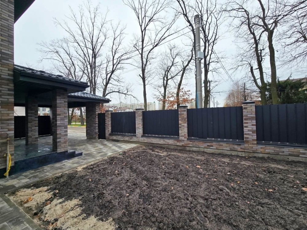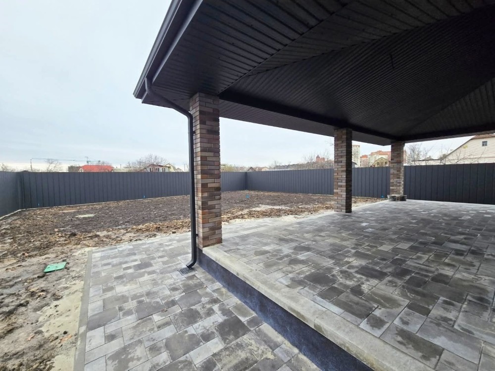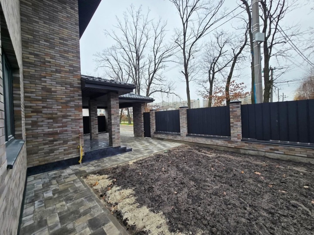 Ділянки 7 соток,, територія захищена парканом. Укладено тротуарну плитку. Автополив, газон, озеленення. У дворі паркування на 2 авто.