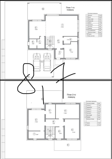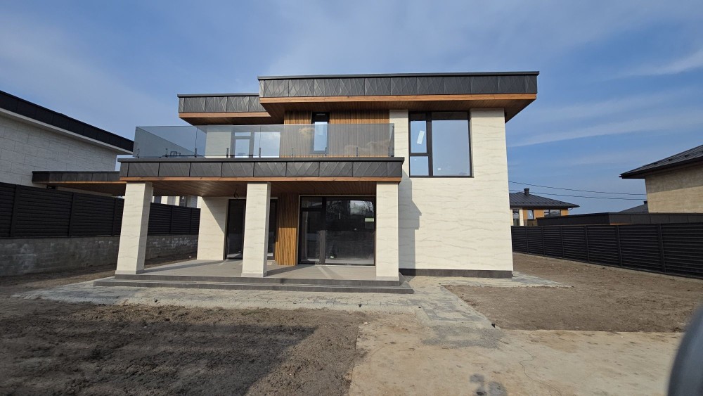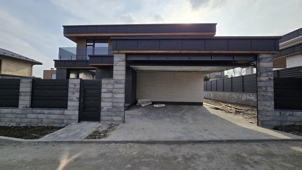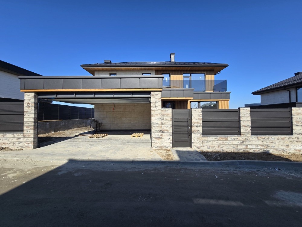 Загальна площа будинку 217 кв. м., навіс для 2 авто, 2 тераси верхня і нижня. Балкон.