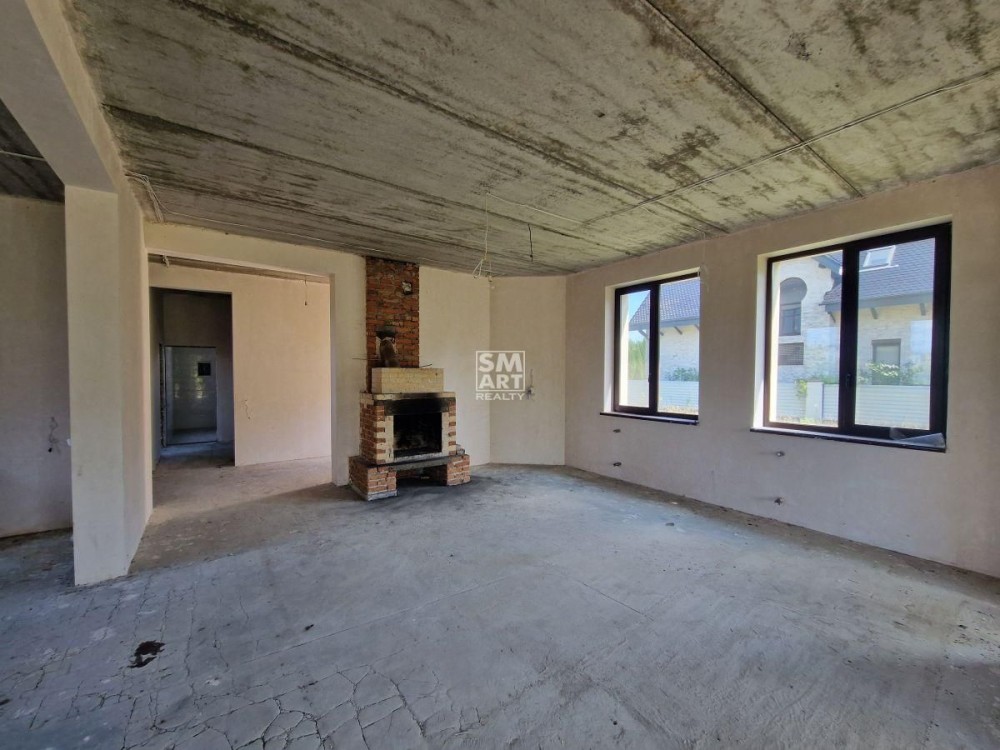 На 1 поверсі кухня-вітальня 50 кв.м з каміном та виходом на терасу, санвузол, спальня, бойлерна, вбиральня, вхід до підвалу. Висота 1 поверху 3,24 м