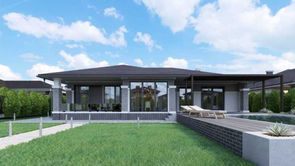 Просторий одноповерховий будинок з трьома спальнями, дві з яких обладнані власним санвузлом і вбиральнею. Біля третьої спальні розташований гостьовий санвузол.