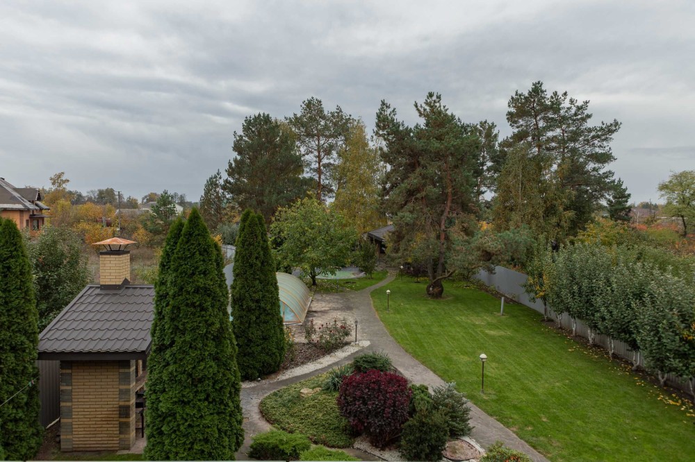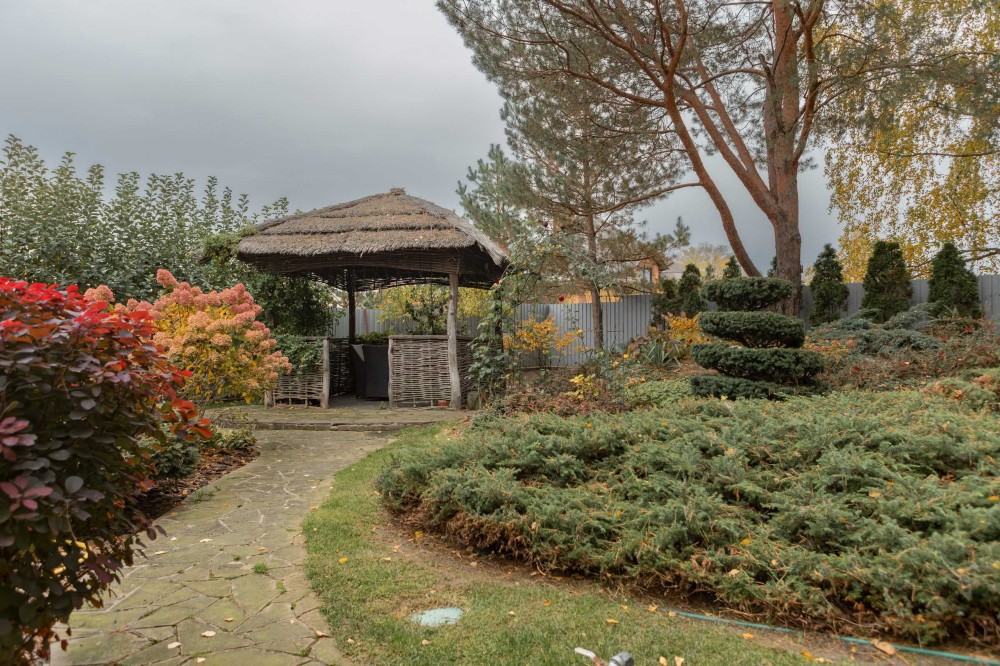 Фруктові дерева, туї та безліч ягідних кущів та квітів по усій территорії ділянки.