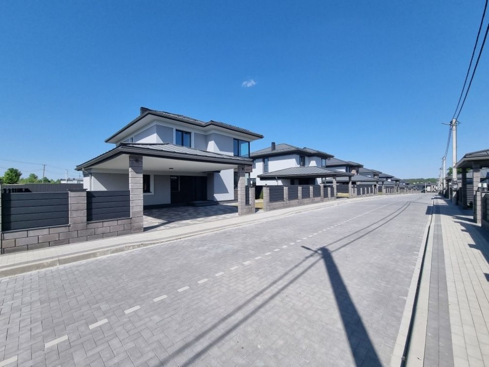 Комунікації: вода – свердловина 60 м., Електрика – 18 кВт., Каналізація септик – 12 куб. Підключений інтернет та сигналізація. У котеджному містечку 2 в'їзди, 24 на 7 охорона, загальний спортивно-дитячий майданчик, асфальт, тротуар буде у плитці, освітлення, озеленення.