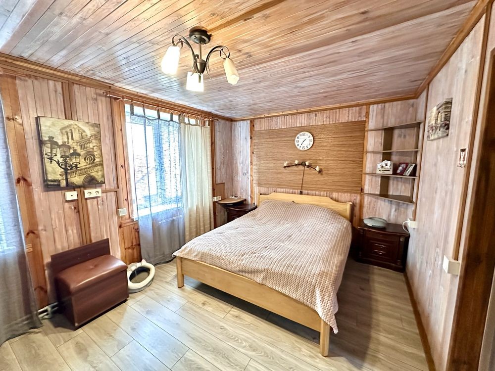 Продається капітальний житловий будинок в охайному, доглянутому стані: заходь - живи. Рік побудови - 2014. Розташування: Київська область, Бориспільський район, село Дударків (район зрубів). Відстань від воріт до ст. метро "Бориспільська" - 22 км, до ст. метро "Лісова" - 26 км. Під'їзд асфальтований. Загальна площа 216,8 кв.м., житлова - 111,6 кв.м., кухня - 12,4 кв.м., відкрита тераса 22 кв.м. В будинку чотири житлові кімнати (спальні), вітальня, два с/вузли з душовими кабінами, котельна, пральна, підвал, гараж на два авто (автоматичні ворота), погріб. Трифазне електропостачання з окремими стабілізаторами (на кожну фазу). Встановлено бензиновий генератор потужністю 6,5 кВт з автоматичним вмиканням у разі зникнення напруги в мережі. Газовий (з джерелом безперебійного живлення) та електричний опалювальні котли, бойлер для підігріву води. Водопостачання - особиста свердловина глибиною 60 метрів з фільтраційною системою очищення води. Чотири накопичувальні ємності (септики): для фекальної води (з вентиляцією) та відведення дощової (талої) води. Відеонагляд, домофон, сигналізація, провідний Інтернет. Площа земельної ділянки 22 сотки. Цільове призначення: будівництво та обслуговування житлового будинку. На території: літня кухня з барбекю, господарче приміщення, погріб, теплиця з полікарбонату, літній душ з вбиральнею, вольєр площею 13 кв.м., садок, газон з автоматичним поливом, город площею 7 соток. У садку: яблуні літніх та осінніх сортів, сливи, персики, вишні, черешня, айва, груша, смородина, виноград. По периметру ділянки паркан з профільного листа (фасадна частина на фундаменті з каменю). Автоматичні розсувні ворота. Будинок не перепродавався. Первісний документ - Свідоцтво про право власності. Поштова адреса, реєстрація місця проживання. Продаж за ціною власника, без комісійних посереднику.