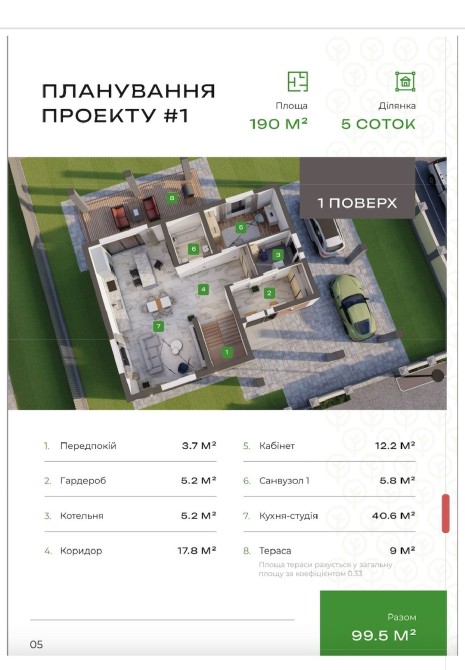 • Загальна площа 190 м2
