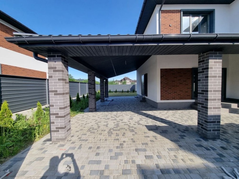 Загальна площа будинку # 4 190 кв. м. + 20м2 з терасою + 40 кв.м. навіс для машини + 40 кв. м. горище. Будинок збудований з газоблоку 30см, утеплений пінопластом 100 мм. Перекриття - залізобетонні , дах - металочерепиця, утеплення мін вата, монолітні з/б сходи. Вікна склопакети енергоефективні із профілем 70 мм.