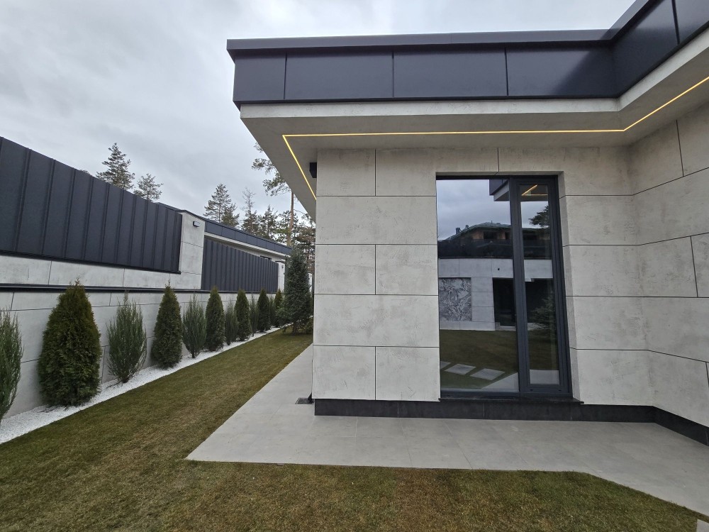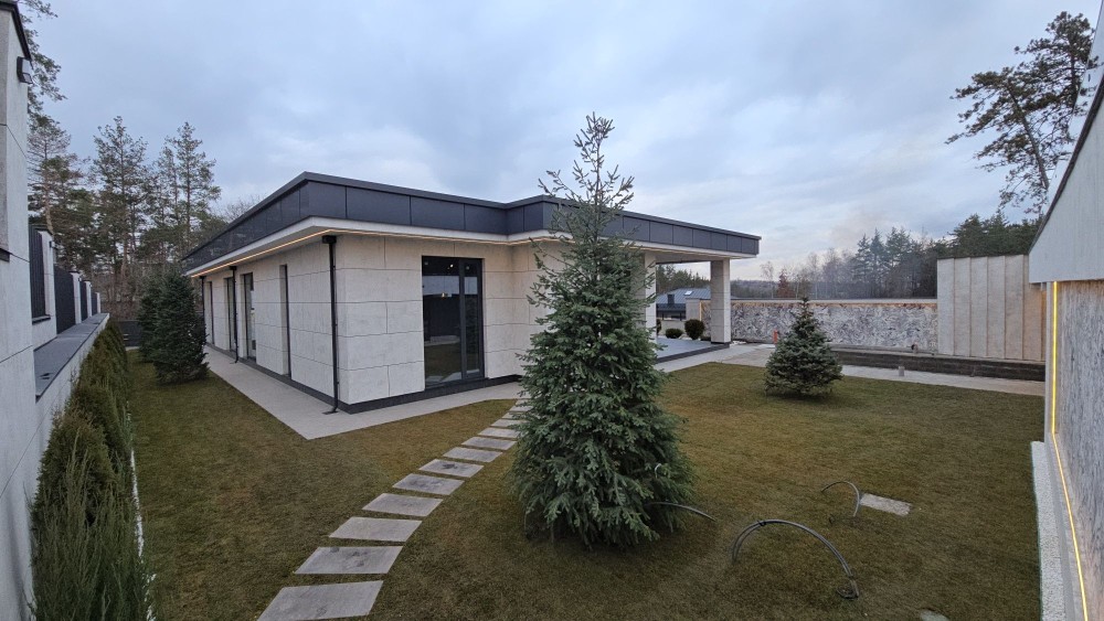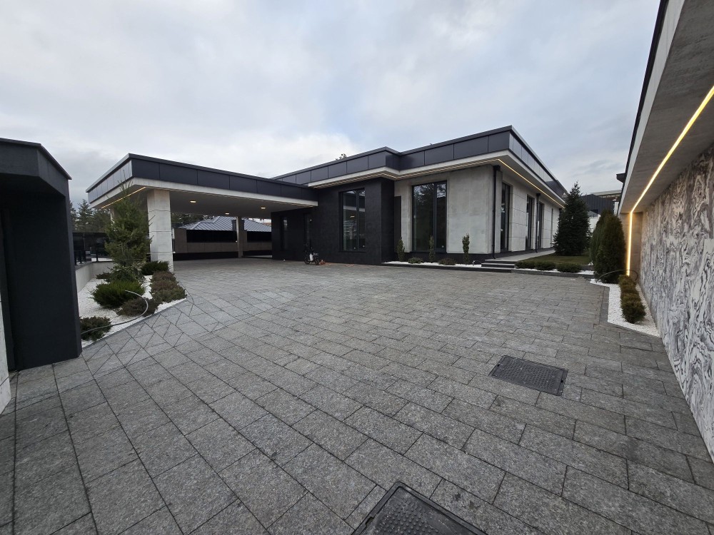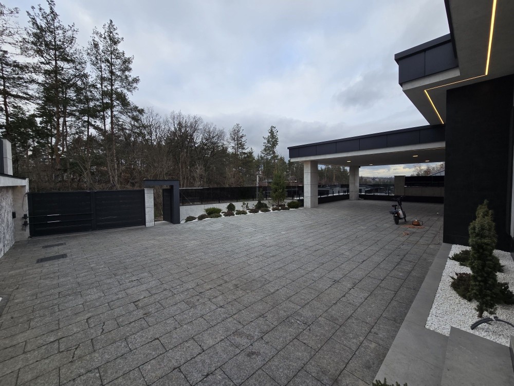 Сучасний будинок у соснах з цегли знаходиться в закритому котеджному містечку з охороною, площею 420 м2 з цоколем + гараж 70 м2 + 54м2 тераса + навіс на 2 авто, додатково паркомісця. Басейн. Перекриття дах моноліт. Стеля 4 м. Сауна 35 м2. Алюмінієві вікна.