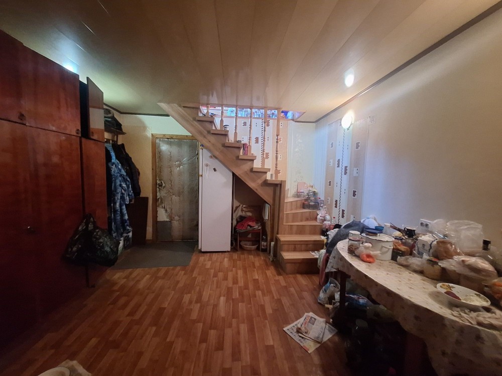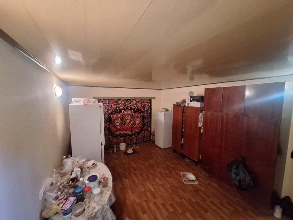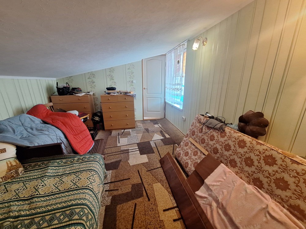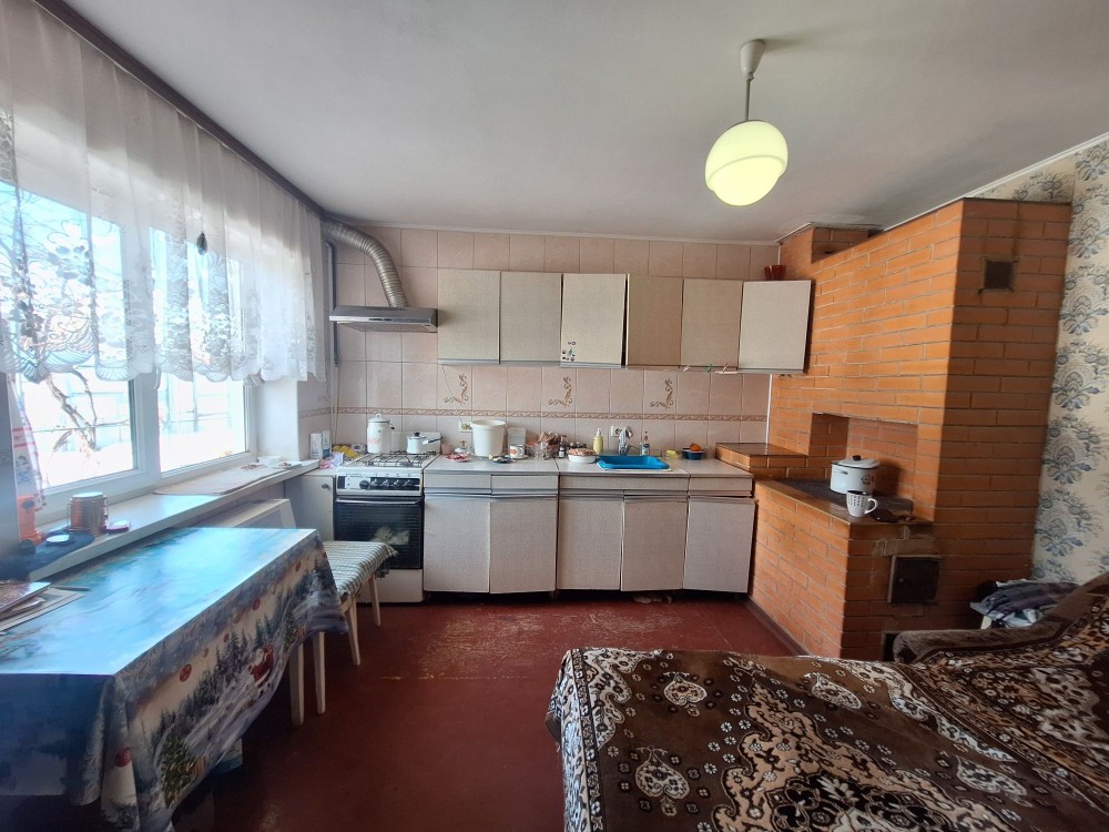 На першому поверсі одна кімната поєднана з кухнею жила, в кухні є плита дровяна на випадок відсутності газу та світла, комора, підсобне приміщення , гараж.