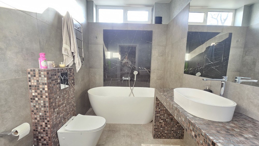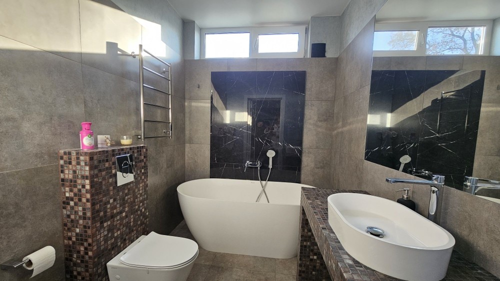3 просторі спальні одна з яких майстер-спальня зі своїм санвузлом та гардеробною і вихідом на терассу, основний санвузол з ванною.