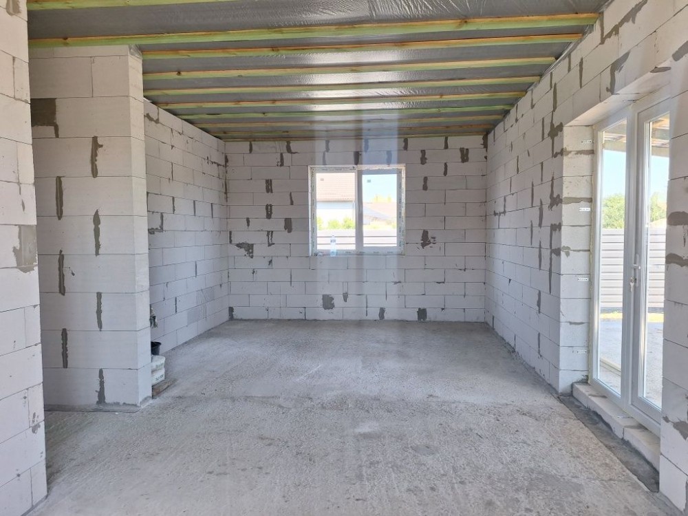 В будинку 3 просторі кімнати , кухня -студіо з вихідом на терасу, санвузол, котельня поеднана з санвулом, вихід на горищне приміщення.