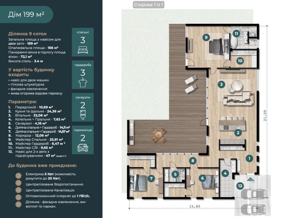 • Загальна площа 199 м2