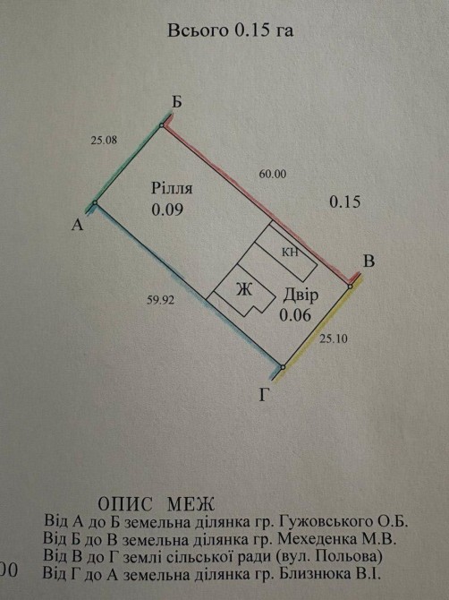 • Площа ділянки 15 сот.