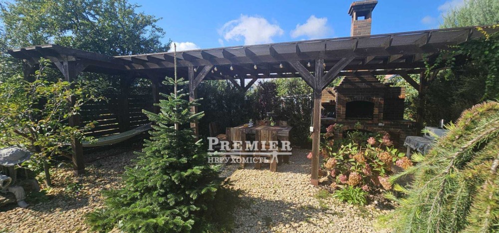 Гарний ландшафтний дизайн подвір'я, де облаштовано зону для барбекю, яка стане ідеальним місцем для зустрічей з друзями на свіжому повітрі.