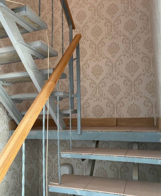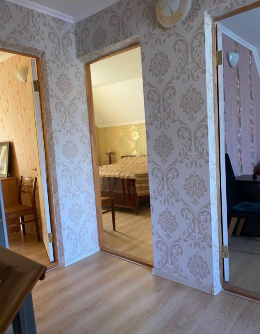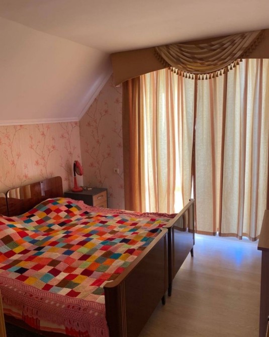 Перший поверх велика вітальня з виходом на терассу та сад , кухня , санвузол. Другий поверх три кімнати та санвузол ( кімнати та санвузол мають свій вихід на балкони) .