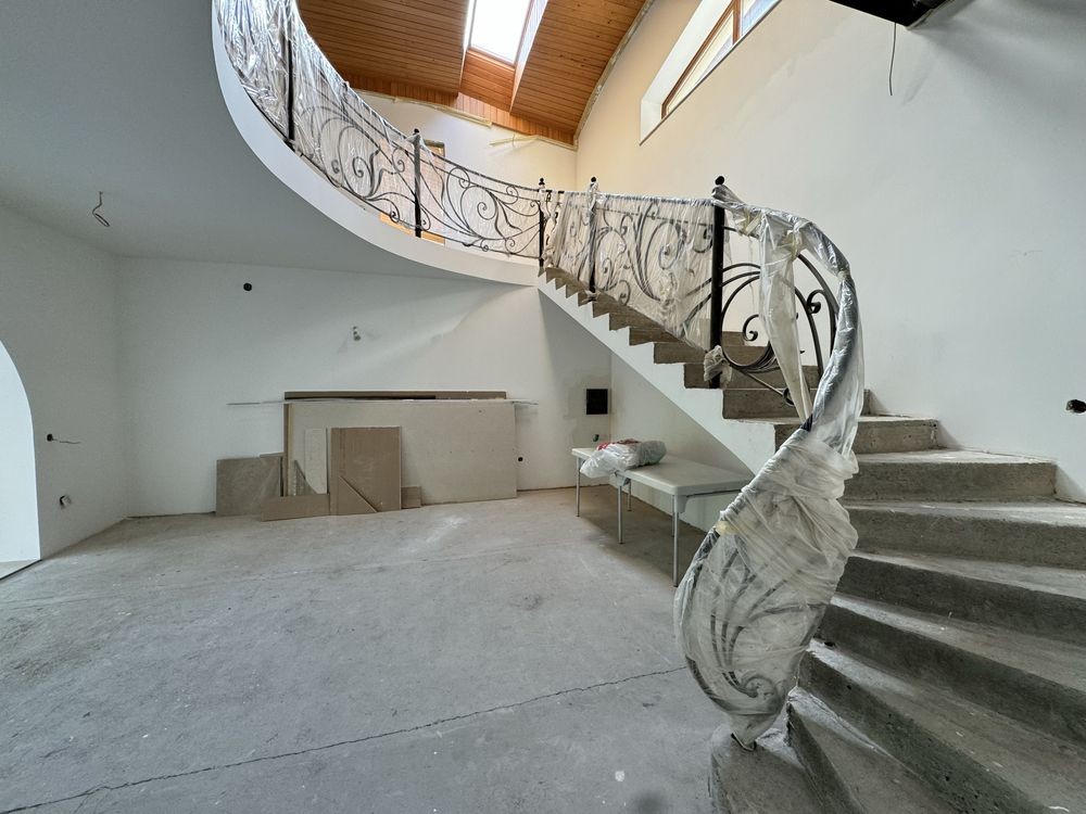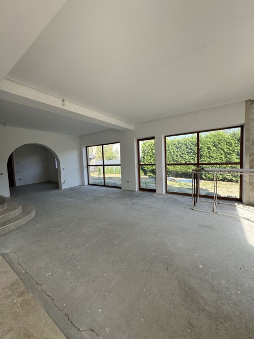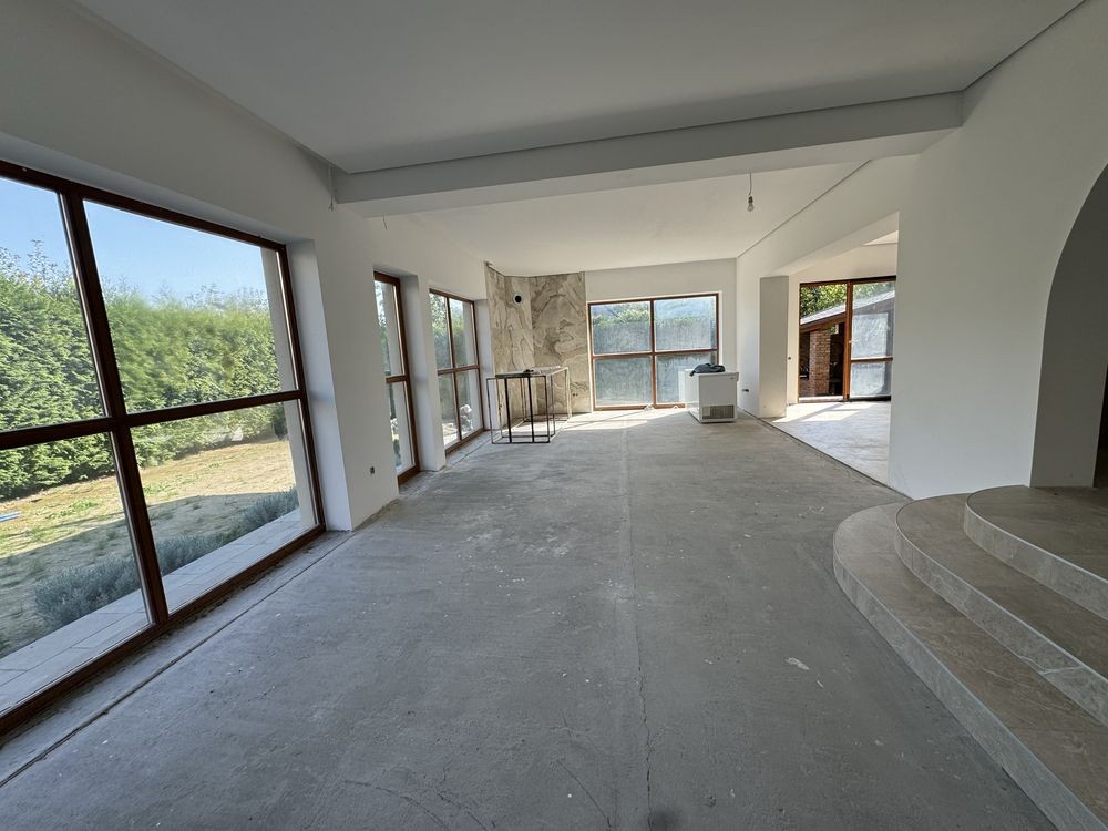 Продаж будинку біля лісу, дуже гарна локація. При асфальтованій дорозі. Будинок 295 кв.м з чистовими стінами. Планування- перший поверх: величезний холл з каміном і панорамними вікнами, кухня, санвузол і гардеробна.