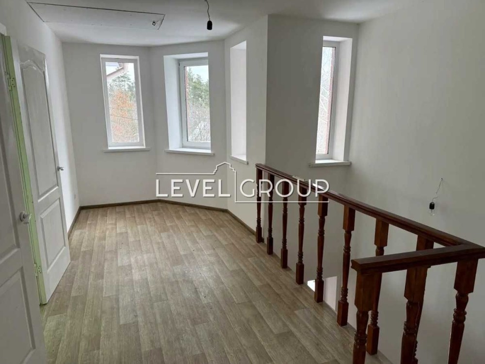 По самому будинку: 140 м², два поверхи, зроблений нормально. На першому поверсі кухня-вітальня з виходом на альтанку, плюс кімната, санвузол і гараж. На другому — ще три окремі кімнати і велика ванна, сім’ї заходить без питань. Є ще горище, яке можна добити під ще одну кімнату або кабінет.