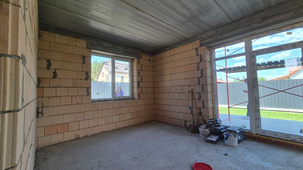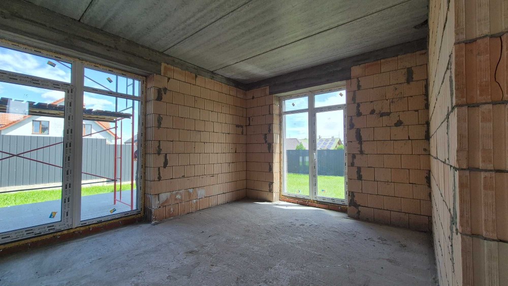 Продам новий будинок 2022 року на Нижньому ДНСі. Два поверхи плюс підвал і холодне горище. Газоблок Д-400 вкритий металочерепицею, обштукатурений і пофарбований, перекритий монолітним залізобетоном. Площа будинку 104 метри. Перший поверх: велика кухня 30 кв.м. з панорамним склінням і виходом на задній двір, передпокій, коридор, перший санвузол. Другий поверх: три житлові кімнати, другий санвузол, сходовий марш. У підвалі котельна, на горище розкладна драбина. Заведена вода зі свердловини 85 метрів, водовідведення в центральну каналізацію. Електроенергія 20 КВт. Змонтована система водяних теплих підлог і радіаторів, електричний котел на 10 КВт. По усьому будинку виконана розводка електрики. Стіни перетерті, металопластикові вікна з теплими скосами, в обох санвузлах розведена і змонтована сантехніка, укладений кахель, душова кабіна на першому і ванна на другому поверсі. На першому поверсі поли викладено плиткою, на другий закуплено і залишиться ламінат, також закуплені і залишаться вуличні світильники та деякі інші матеріали. Залізобетонні сходи на другий поверх викладені керамогранітом. Ділянка 2.5 сотки, обгороджена, відкатні автоматичні ворота. Двір вимощений тротуарною плиткою, змонтовано відведення стічних вод в дренажний колодязь. Залитий фундамент і колони під бесідку і барбекю. З вікон і бесідки відкривається чудовий панорамний краєвид на зелену зону річки Рось. Ціна: 160.000 у.о. Торг. Запрошуємо до співпраці продавців і орендодавців нерухомості. Агенція нерухомості пропонує повний перелік операцій з нерухомістю та супровідною документацією. Купівля-продаж, оренда, обмін житлових та комерційних об’єктів, земельних ділянок. Оцінка майна ринкова та для оподаткування. Технічні паспорти. Узаконення самочинного будівництва, добудови, перепланування. Початок будівництва та ввід в експлуатацію. Землевпорядні роботи: кадастровий номер, приватизація, розподіл, об’єднання, зміна призначення. Кредитування під заставу нерухомості. Безкоштовно приймаємо заявки від продавців та орендодавців. Гарантія конфіденційності. Юридичний супровід. м.Біла Церква Тел.(097)-879-80-99