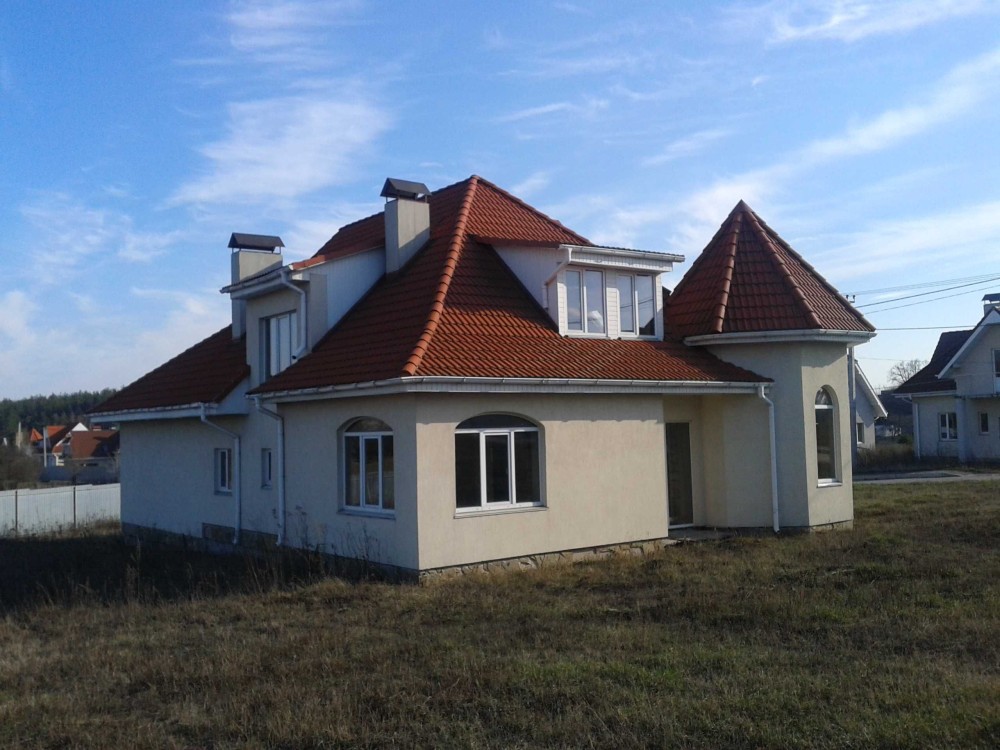 Продається сучасний житловий будинок загальною площею 250 кв.м., просторий гараж на два авто, функціональне планування. ВВедений в експлуатацію, приватизована земельна ділянка 15 сот, асфальтована дорога до будинку. Побудований з газоблоку, утеплювач 10 см пінопласт, монолітне перекриття, криша з керамічної черепиці BRAAS(Німеччина), чорнова стяжка, стартова штукатурка стін. На першому поверсі: гараж, котельня, с/в, гардеробна, кімната, кухня-вітальня, зал. Другий поверх - вільне планування. Комунікації: світло 10 кВт 3 фази, вигрібна яма, газ по вулиці. Просторий широкий двір. Ціна 70000 у.о, торг писутній.