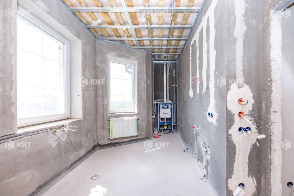 Будинок відштукатурений, зроблена чистова стяжка на 2-х поверхах, розведення під кондиціонери на двох поверхах, 2 металеві драбини з першого на другий і з другого на горище, вікна veka 5 камер.