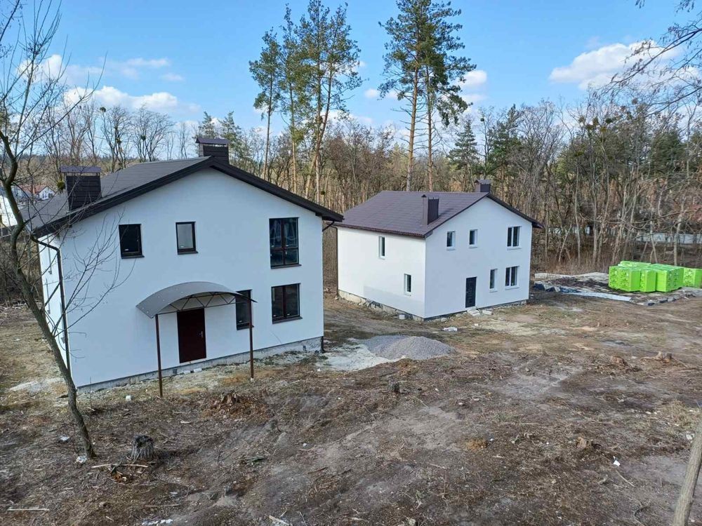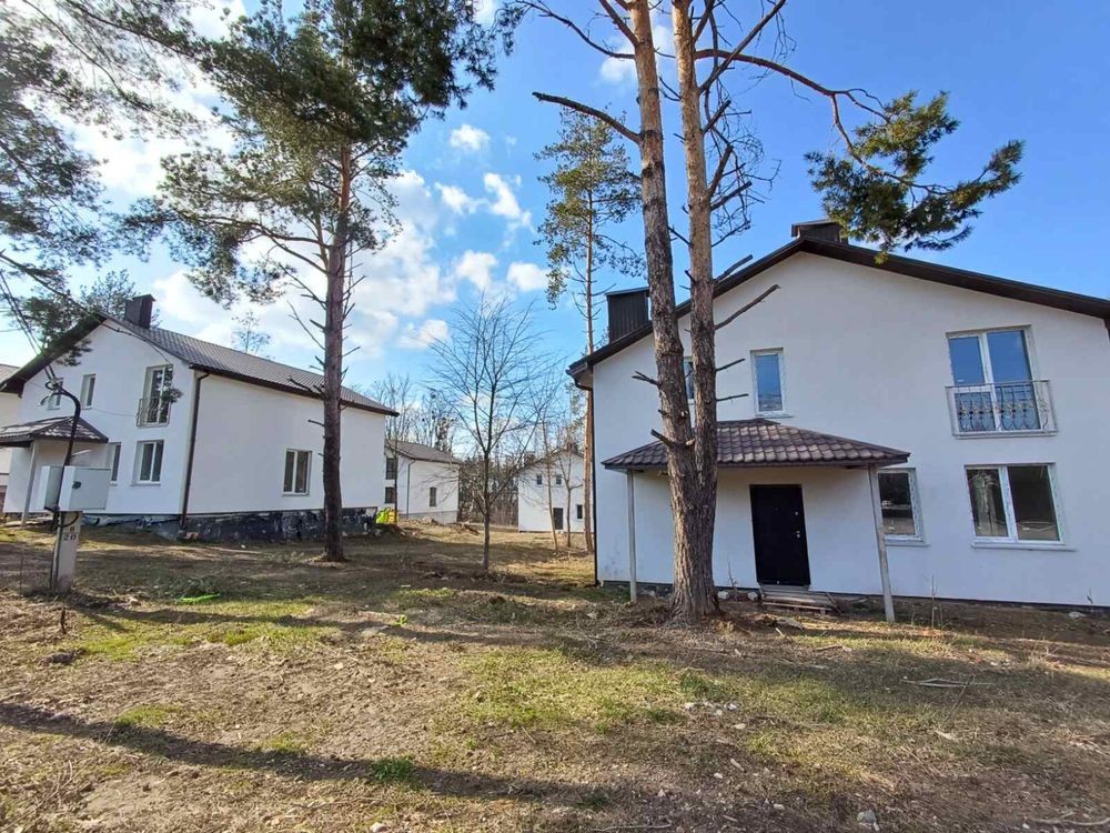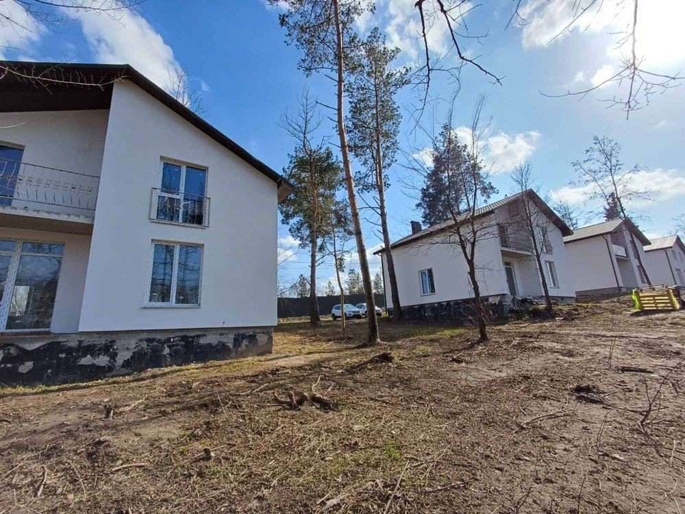 Не велике котеджне містечко з 6 будинків загальною площею 155 кв.м кожен з яких розташований на приватизованій ділянці 6-7 соток( в останніх будинків є можливість зробити документи на землю). Природа на ділянках, великі сосни, до асфальту 200 м, до великого озера 500 м.Гарні сусіди. Вся ця краса не залишить вас байдужими. Всі будинку будувались якісно, в 2022/2023 побудови. Фундамент залитий монолітніми подушками. Стіни- пеноблок, утеплені. Перекриття бетонне. Дах утеплений, металочерепиця.Септик, розведена електрика 15 кв. Буде зроблена скважина одна на 2 будинки. Зручне планування. 1-й поверх — котельня,с/в, кухня-студія з виходом на терасу. 2й поверх- 3 кімнати, с/в, або гардероб.