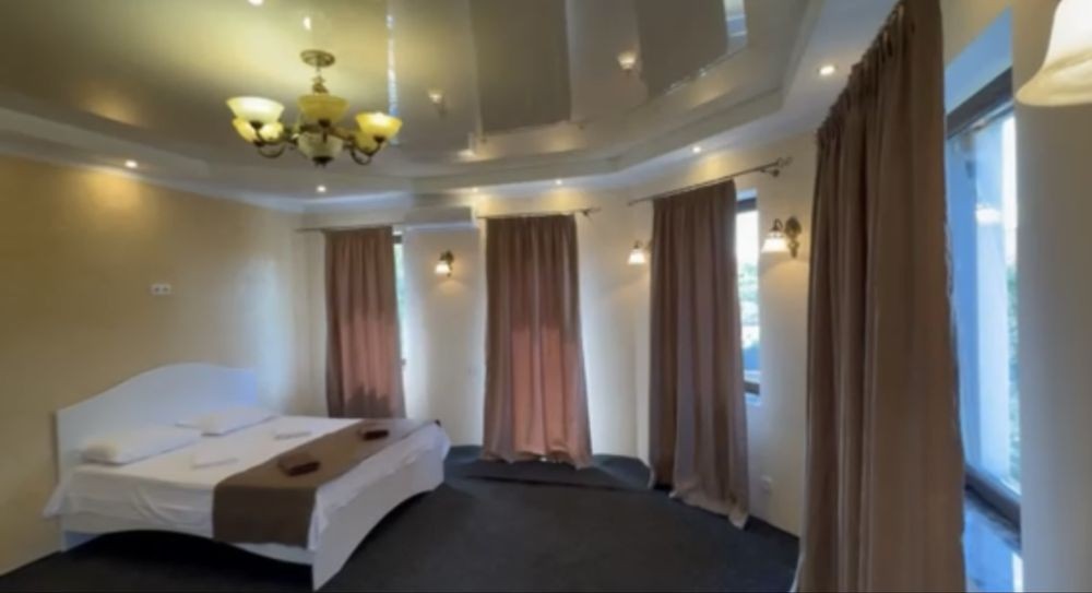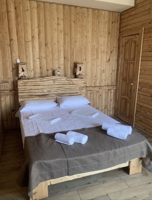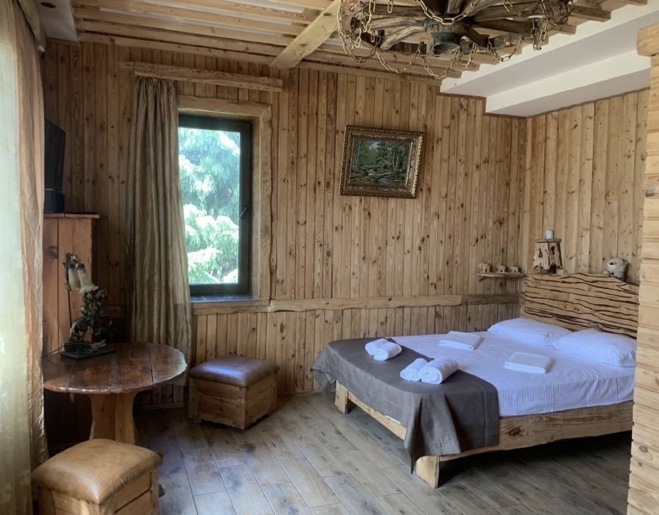 Ціна від 10000 грн. До 7 гостей -10000 грн за добу. Лазня та басейн оплачується окремо 5000 грн за добу або погодинно -1000 грн за годину.(Мінімум 4 години). Доплата за кожного наступного гостя 1000 грн. П’ятниця ,субота та неділя вартість оренди на 1000 грн вище. 332 Будинок-зруб з басейном з підігрівом та лазнею. 3 великі спальні, розрахований лише до 12 гостей, за стіл можна розмістити до 12 гостей та спальних місць 9. Приймаються тільки не гучні компанії. На території є альтанка з зоною барбекю, мангал, тенісний стіл. На першому поверсі: зал-студія, басейн з підігрівом та лазня. На другому поверсі 3 роздільні, просторі спальні. Лазня, басейн та квадроцикл оплачується окремо. Також можлива оренда без лазні та басейну. Будинок повністю обладнаний для комфортного проживання, є всі необхідні меблі та побутова техніка, є стіл на 8 персон та камін.