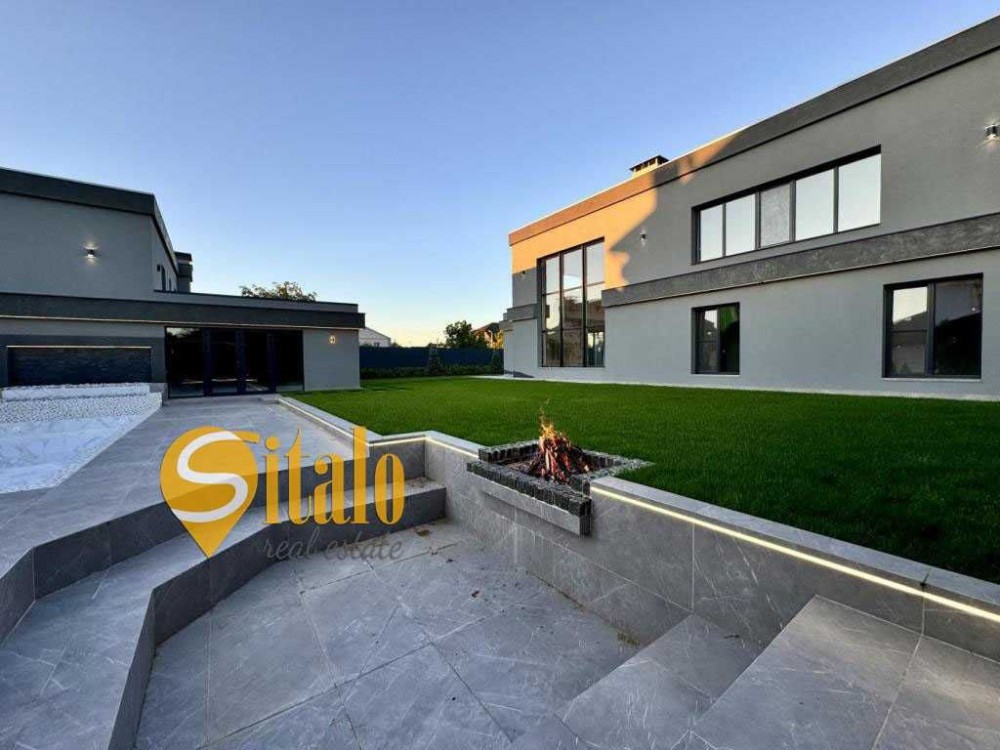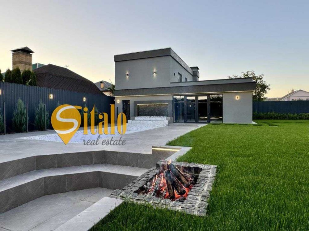 Територія 12 соток, ландшафтний дизайн, газон з автополивом, декоративні дерева, басейн, гостьовий будинок з усіма зручностями і сауною.