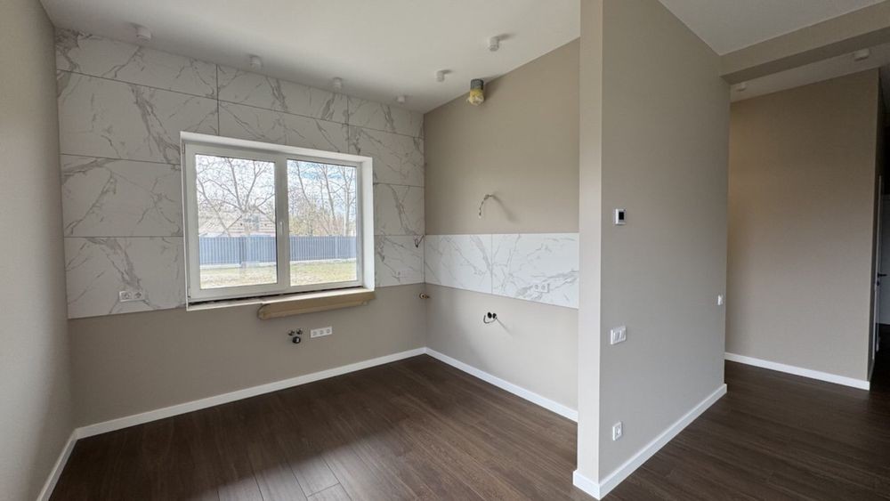 У будинку: – три світлі спальні, – дві повноцінні ванні кімнати, – кухня, об’єднана з вітальнею, – котельня.