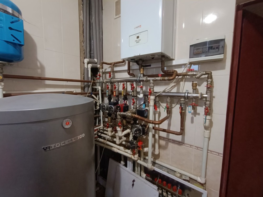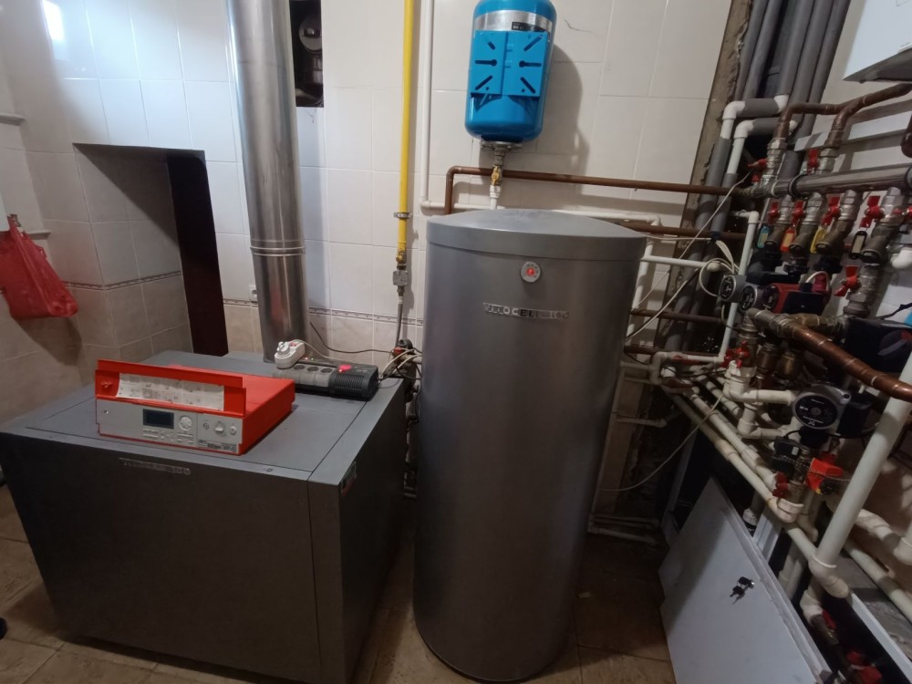 В наявності три котли (газовий, електричний, твердопаливний), система водоочищення.