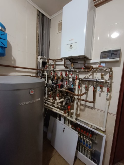 Тепла підлога(водяна) скрізь,де є плитка.