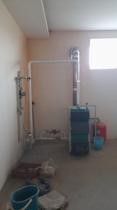 Опалення - анодний електрокотел і твердопаливний котел. Є новий газовий котел, газ підведено.