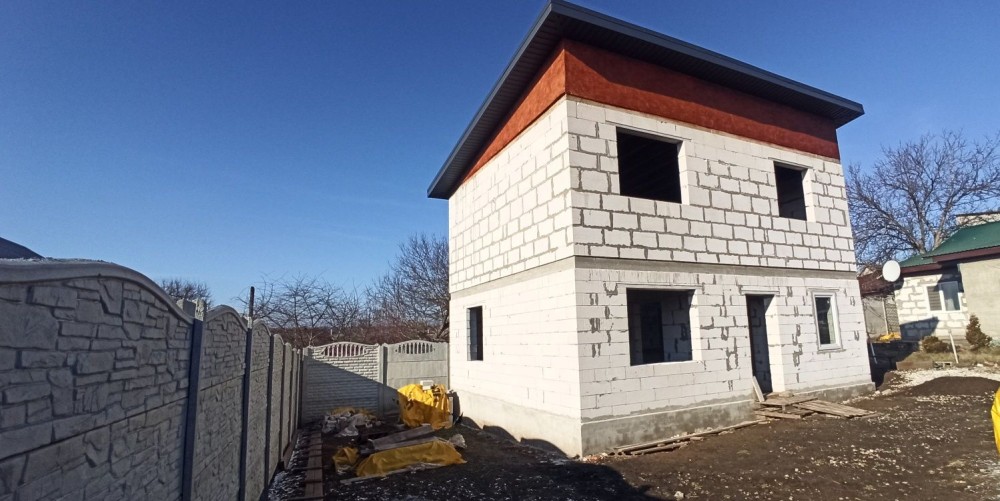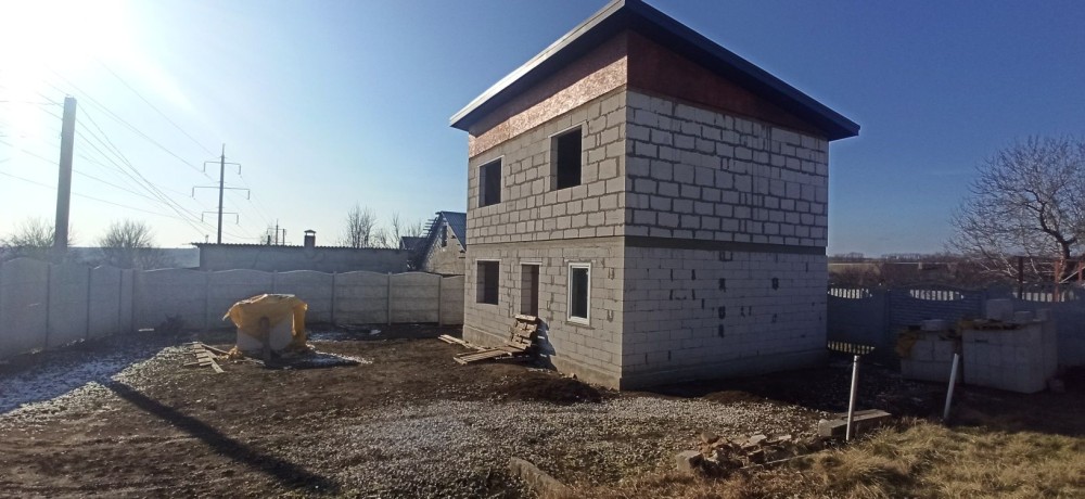 Продам двоповерховий будинок 103 кв.м. на ж/м Мирний на провулку Синявського (до маршруток та магазинів 350 метрів). Будинок побудований з газобетону, має 2 армопояси, криша односкатна - м'яка кровля. Планування: на першому поверсі кухня-студія, санвузол, комунікаційна, гардеробна, гараж, на другому поверсі 3 спальні та санвузол. Земельна ділянка 4,11 сотки має кадастровий номер, огорожена. У дворі є місце для зони відпочинку, можна добудувати навіс та інше. Прописаних немаэ, готовий для продажу.