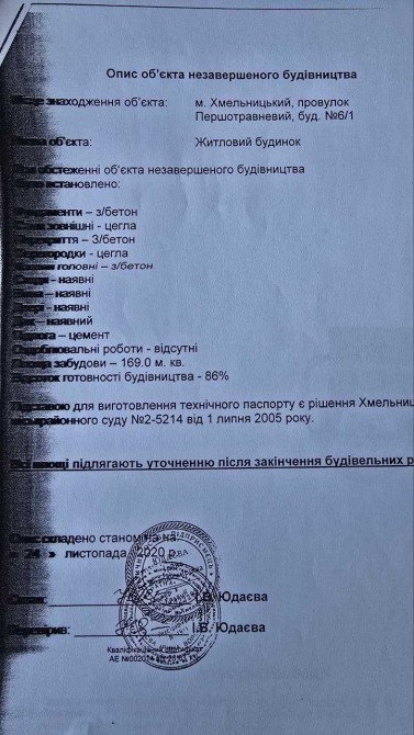 Будинок — незавершене будівництво