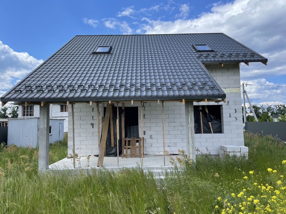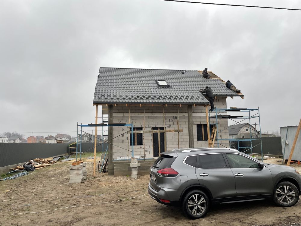 Всі матеріали ТОП: газоблок Стоунлайт, черепиця – Бельгія, мансардні вікна ROTA (Німеччина).