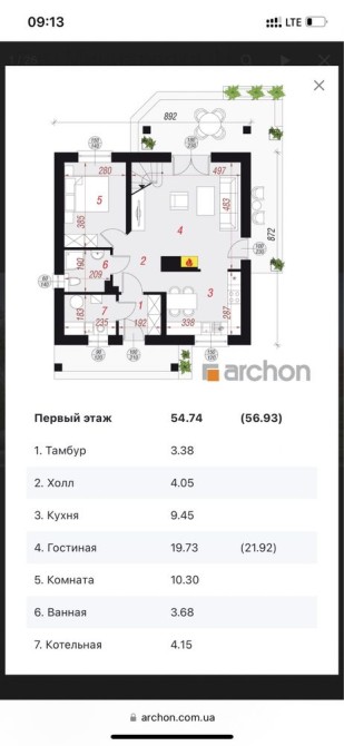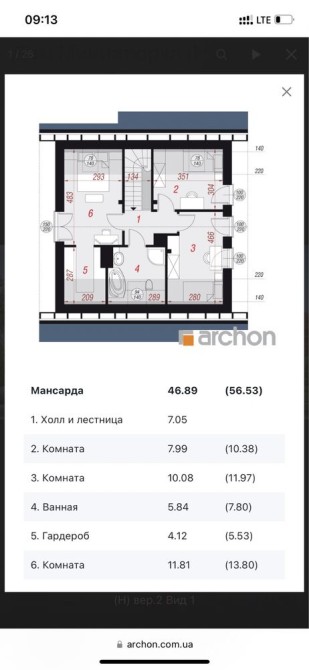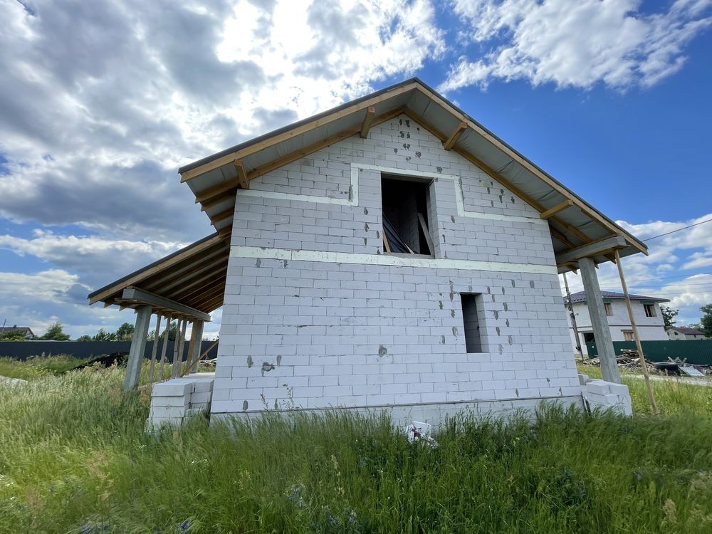 Ділянка 10 соток, правильної форми, цільове призначення – під забудову, дозвільні документи присутні). Новий масив, забудований на 50%. Два поверхи за проектом від компанії Архон Україна, 1й поверх – прихожа, кухня, вітальня, спальня, СВ, господарське приміщення, тераса 20 кв. м.!!! 2й поверх – 2 спальні, 1 майстер спальня із гардеробом, великий санвузол.