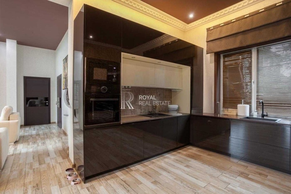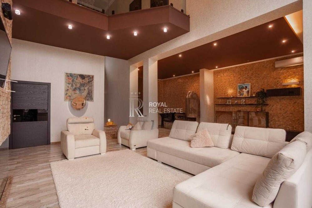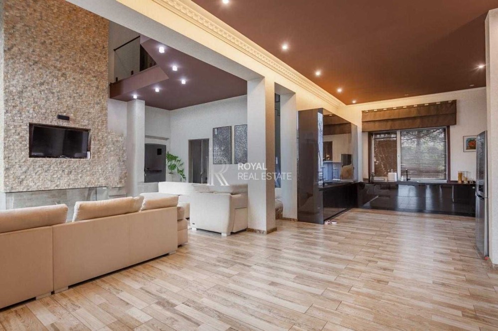 На першому поверсі: Кухня, вітальня з каміном і високими стелями що надає свій вишук, велика обідня зона, окремо гостьова можна зробити під кінозал, санвузол гостьовий, пральня, гардеробна.