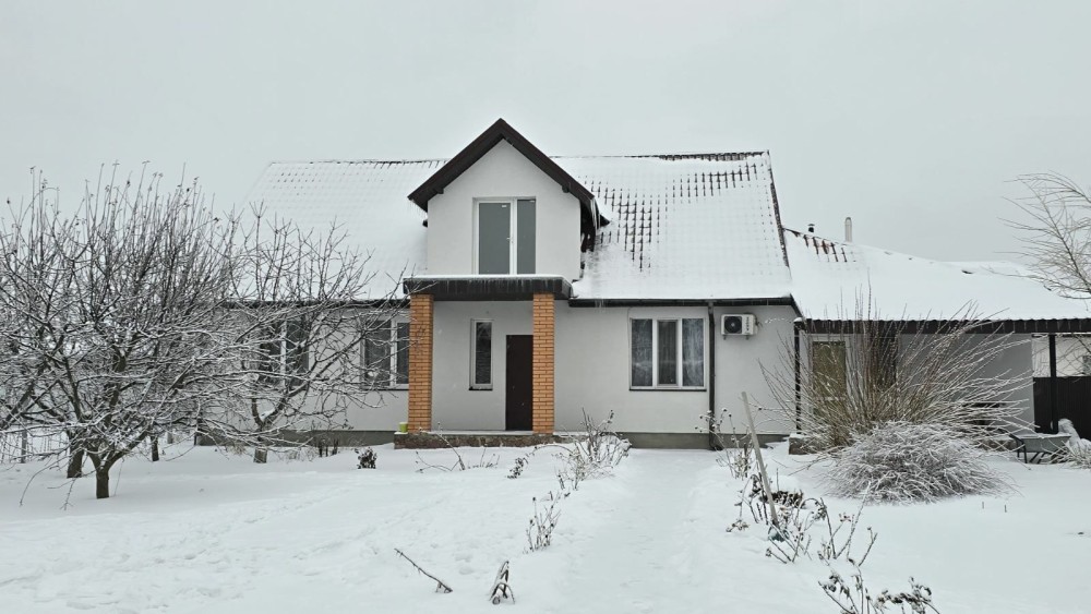 Будинок збудований з цегли(самого міцного екологічно чистого надійного матеріалу) товщиною стін 380мм та утеплений 100 мм пінопластом + декоративна штукатурка баранець(ceresit)