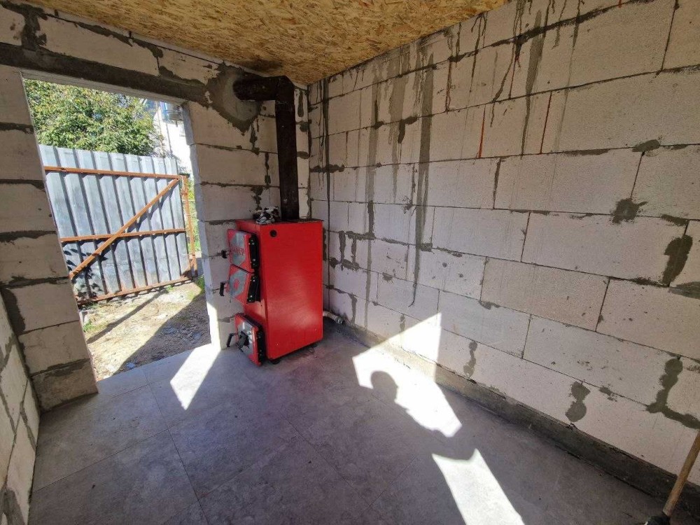 Встановлений твердопаливний котел.